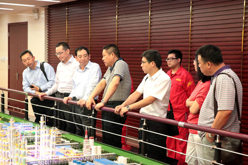 在新能源公司副董事长林发现的陪同下,林荣光一行参观了公司沙盘模型展厅,林发现首先欢迎林荣光一行莅临公司参观考察指导,感谢近年来招商银行给予了广汇事业的大力支持与帮助,逐一介绍了广汇新能源公司的项目建设进展情况,并展望了公司的未来发展规划。