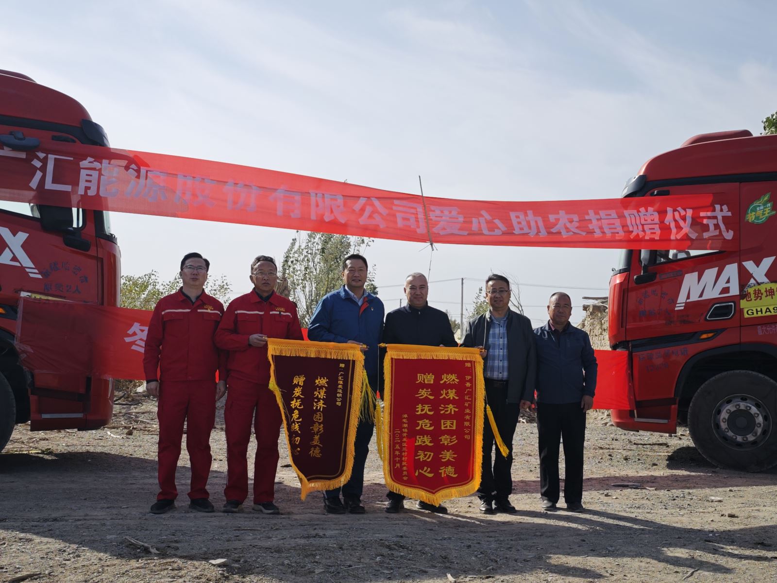 仪式现场,淖毛湖镇开发三区村村民委员会代表全体村民,分别向煤炭运销公司、矿业公司赠送锦旗,对企业的爱心善举表示感谢。